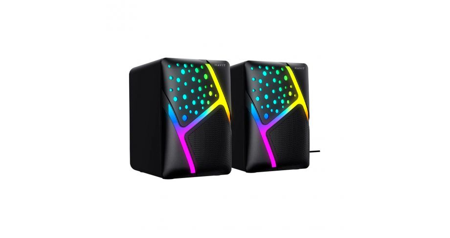 Estos parlantes cuentan con iluminación LED que añade un toque de estilo y ambiente a tu espacio. Se alimentan a través de USB, lo que los hace prácticos y fáciles de usar. Además, ofrecen una conexión de 3.5mm para una amplia compatibilidad con dispositivos. También incluyen un controlador de volumen para que puedas ajustar fácilmente el nivel de sonido según tus preferencias. Disfruta de una experiencia de audio inmersiva y visualmente atractiva con los parlantes Havit para PC.